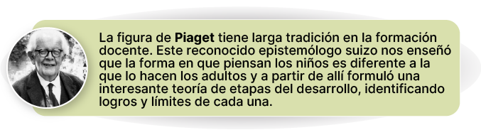 Su clásica obra “Seis estudios de Psicología” fue material de lectura frecuente en el magisterio, orientando el curriculum y las prácticas pedagógicas. Lo más interesante es su firme posición constructivista según la cual el sujeto es activo en el proceso de construir el conocimiento, poniendo en juego mecanismos de asimilación y acomodación. En la base de su teoría está el concepto de estructura, vale decir, esos sistemas de conocimiento y habilidades que los individuos usan para interactuar con el mundo y entenderlo. Estas estructuras se desarrollan y complejizan a medida que los individuos progresan a través de las etapas del desarrollo cognitivo y están sometidas a procesos de equilibrio y desequilibrio contínuos. De manera sencilla, cuando una estructura está estable, las experiencias nuevas son fácilmente integradas en los esquemas existentes a través de la asimilación. Sin embargo ocurre que en ocasiones, lo nuevo se resiste (o rebasa) las estructuras preexistentes. Son los momentos de “conflicto cognitivo” que requieren que toda la estructura deba reorganizarse, rearmarse, para integrar esto nuevo. Allí se produce verdaderamente el cambio, y por ende el progreso hacia estructuras más complejas, mejor organizadas, ricas y avanzadas. De este hecho se deduce la importancia de la función docente en propiciar oportunidades de conflicto cognitivo para que los sujetos avancen en su desarrollo, si bien para Piaget la clave está del lado de la biología, la cual permitirá o no determinados logros a determinadas edades.
