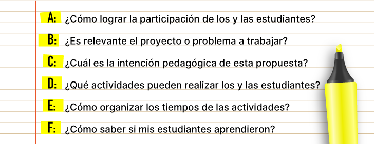 Este último requisito resulta fundamental dado que los proyectos ABP en Comunidades de Aprendizaje están pensados desde una perspectiva institucional. Sobre este punto en particular los invitamos a leer el material bibliográfico del Ministerio de Educación Cultura, Ciencia y Tecnología de la Nación, respecto a ¿Cómo enseñar con proyectos y problemas? (2019). Si bien se trata de un material pensado para la escuela secundaria, sus principios y lineamientos son aplicables a todos los niveles y modalidades del SE.