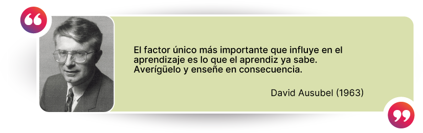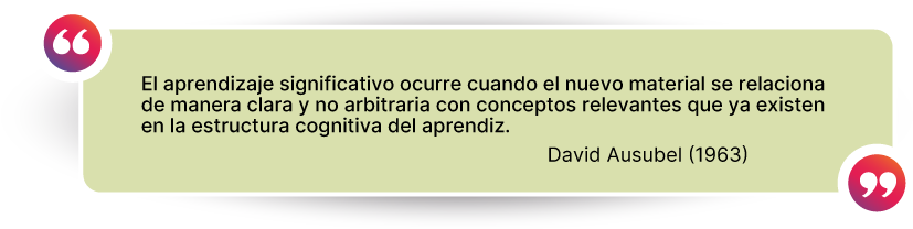 Veamos algunas puntualizaciones sobre este concepto. Se trata de un constructo acuñado por David Ausubel (1963), conocido psicólogo y pedagogo estadounidense quien propuso una forma diferente de pensar la enseñanza y el aprendizaje en contextos de instrucción. Sus ideas se ubicaban en clara oposición al aprendizaje memorístico y repetitivo, propio de la pedagogía tradicional, rescatando el valor de la comprensión en la construcción del conocimiento.