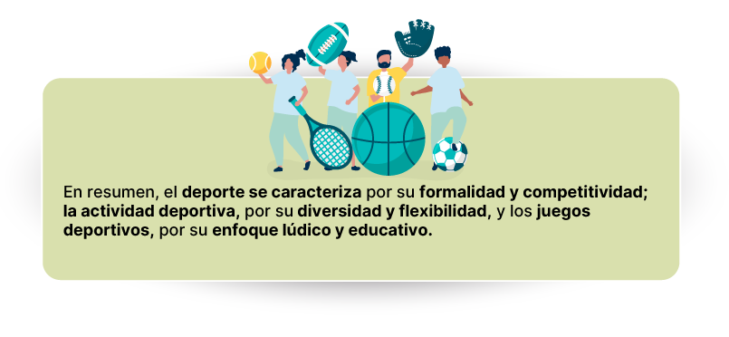 Por último, los juegos deportivos son actividades lúdicas que combinan aspectos recreativos con elementos deportivos, pero en un contexto más flexible y con reglas adaptables. Los juegos deportivos se enfocan más en la diversión y el aprendizaje que en la competición formal, y suelen ser utilizados en contextos educativos o recreativos. Son actividades que combinan, en mayor o menor medida, distintas facetas de los juegos y del deporte, como el entretenimiento, el desarrollo físico, el estímulo mental y la competencia.