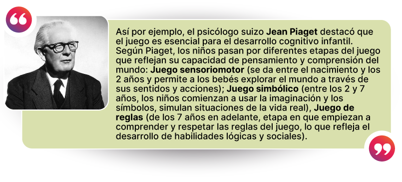 Muchas otras teorías psicológicas aportaron a este tema, destacando su valor en el desarrollo de la inteligencia emocional y habilidades para manejar conflictos; en el bienestar psicológico; en la creatividad y la construcción de vínculos de apego positivos. Los estudios en psicología sugieren que el juego no solo es fundamental en la infancia, sino que sigue siendo una fuente importante de bienestar y crecimiento a lo largo de toda la vida.